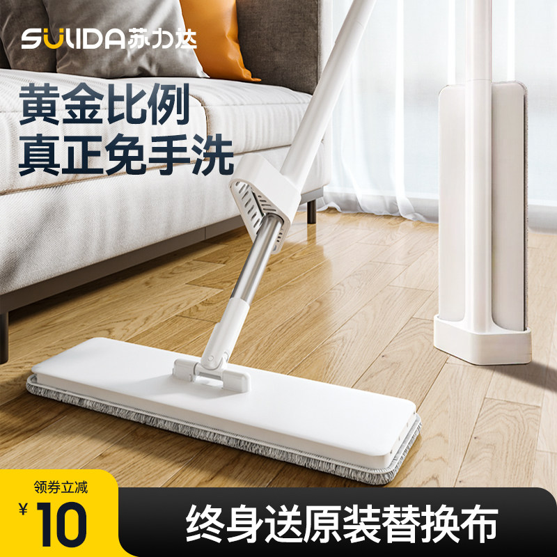 美丽雅免手洗拖把平板地拖木地板家用拖布干湿一拖两用神懒人净器