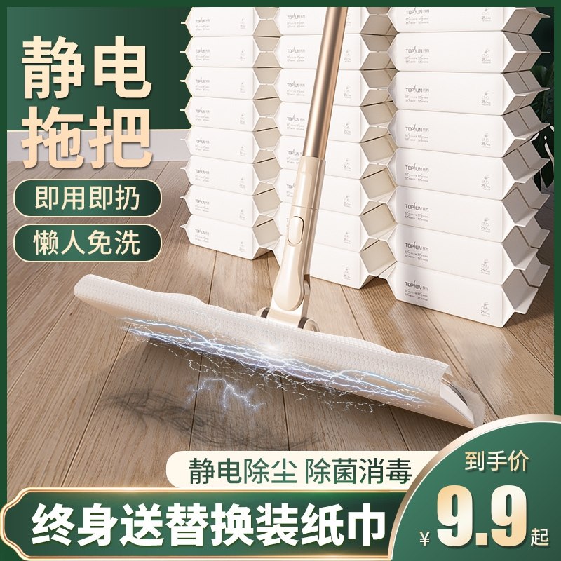 静电除尘拖把一次性拖布免手洗平板家用擦地板拖地干湿纸巾吸尘