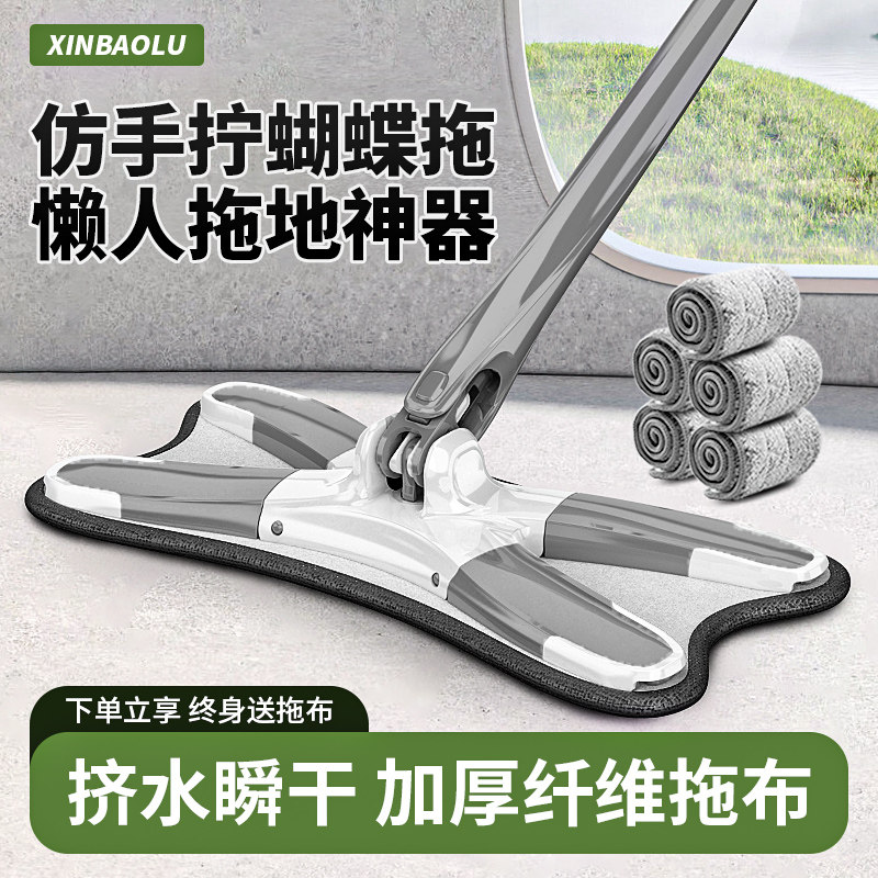 拖把家用2022新款蝴蝶式X型平板免手洗拖地板神器一拖懒人拖布净