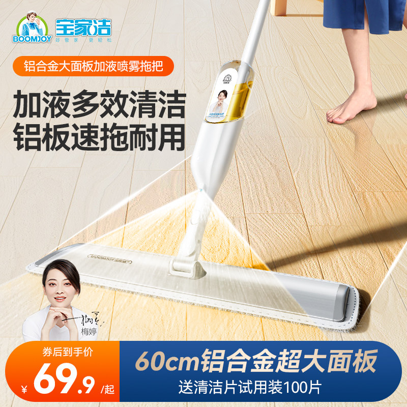 宝家洁喷水平板拖把免手洗家用一拖喷雾净拖布干湿两用拖地神器