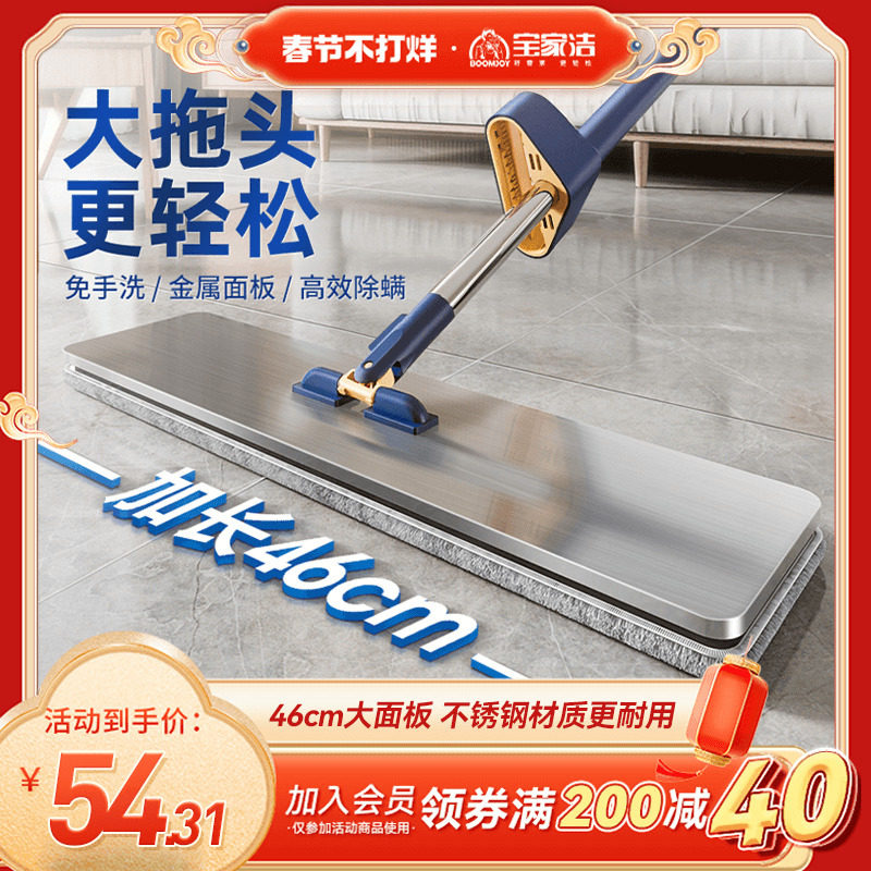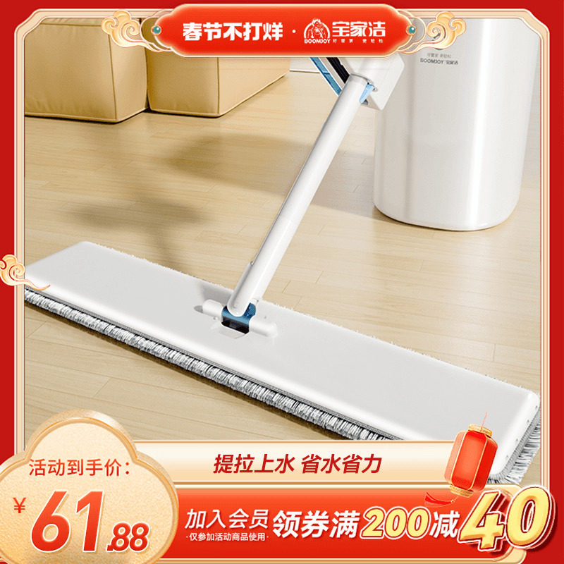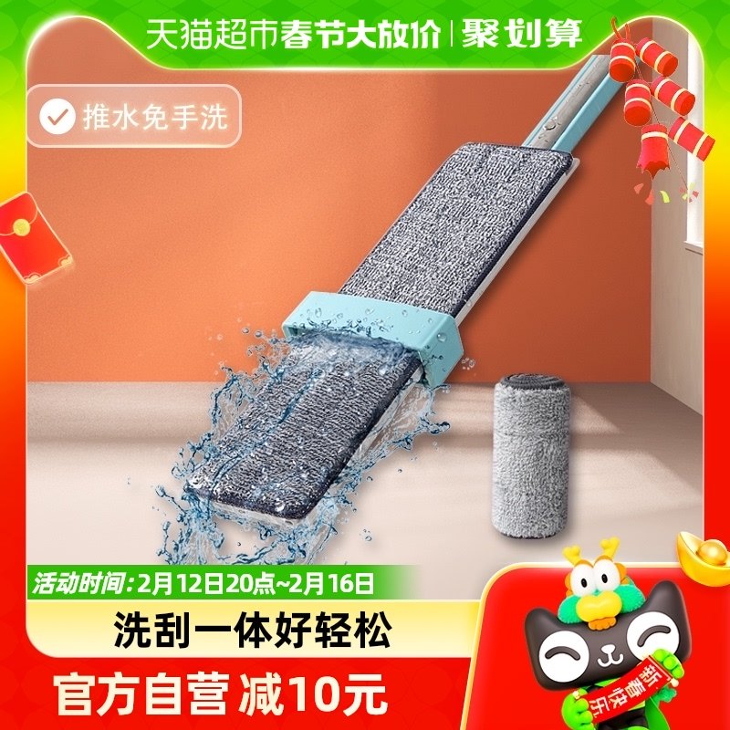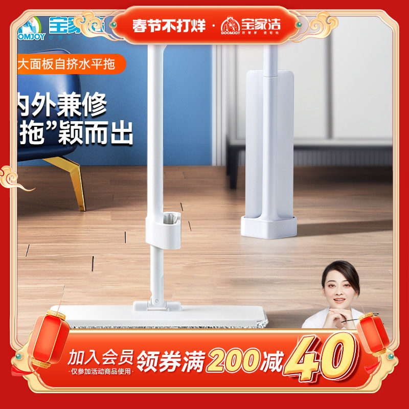 宝家洁平板拖把免手洗懒人拖布家用一拖干湿两用网红净擦拖地神器