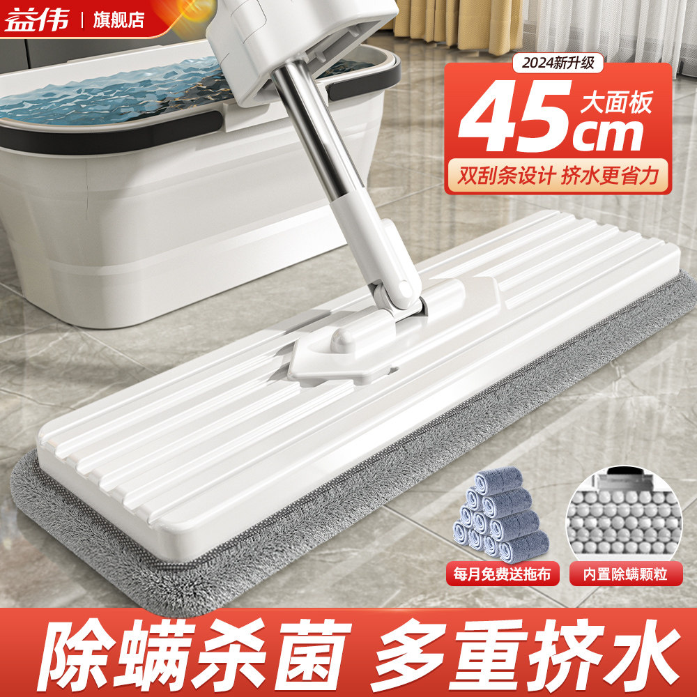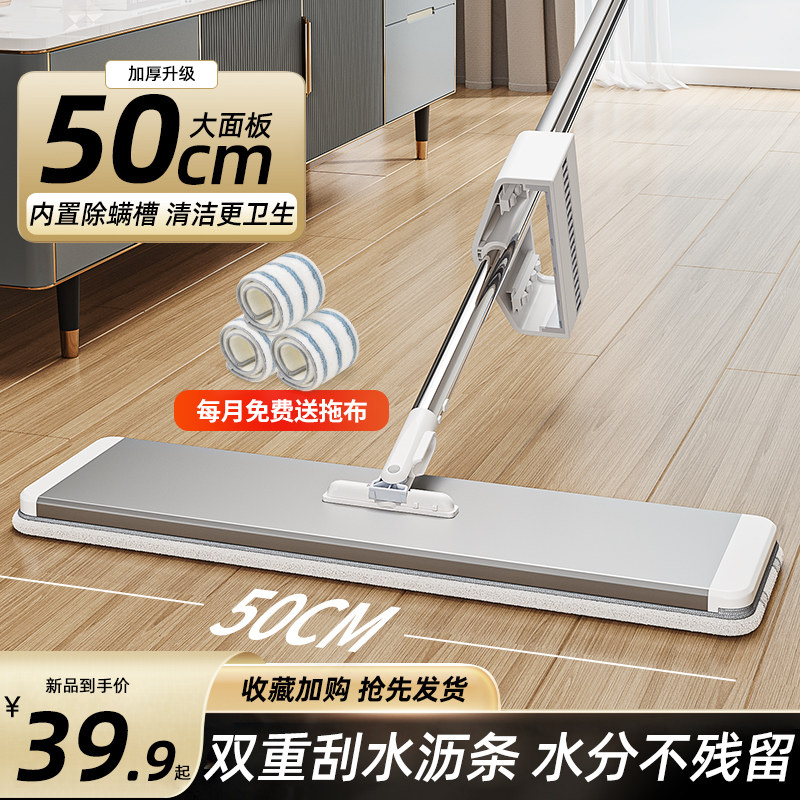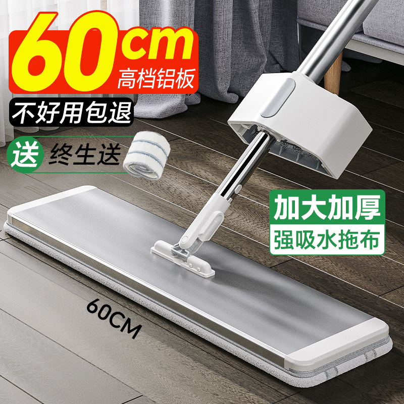 平板拖把60cm大号家用实木地板瓷砖铝合金免手洗刮刀粘贴式替换布
