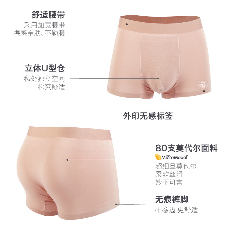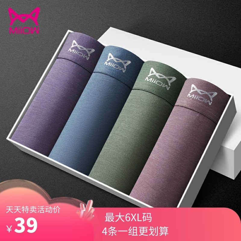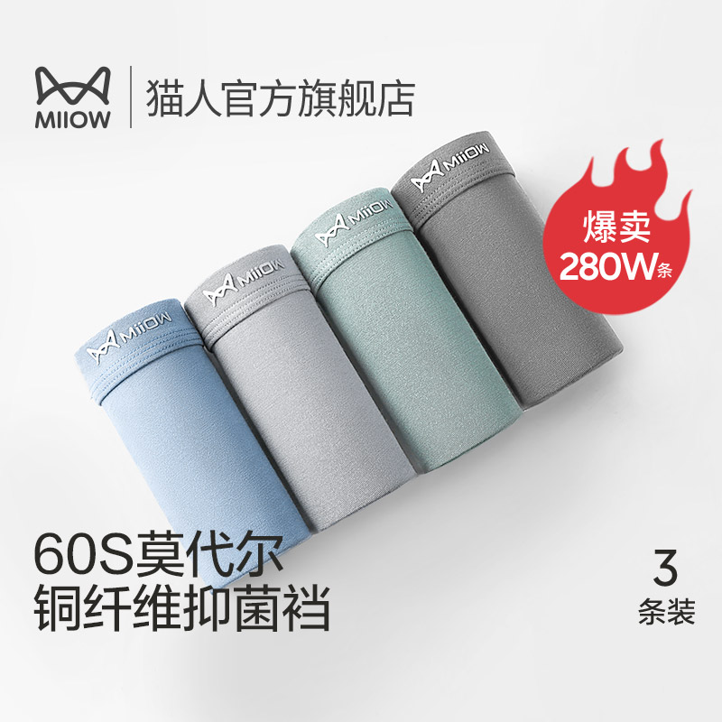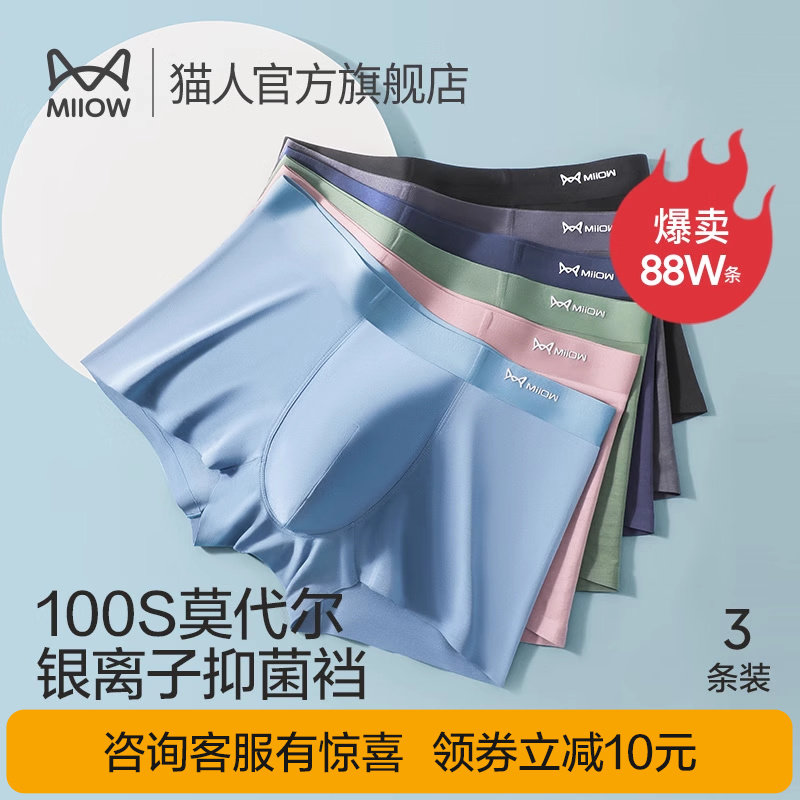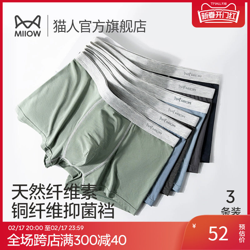猫人无痕莫代尔男士内裤宽松柔软亲肤透气抑菌内档男生四季平角裤