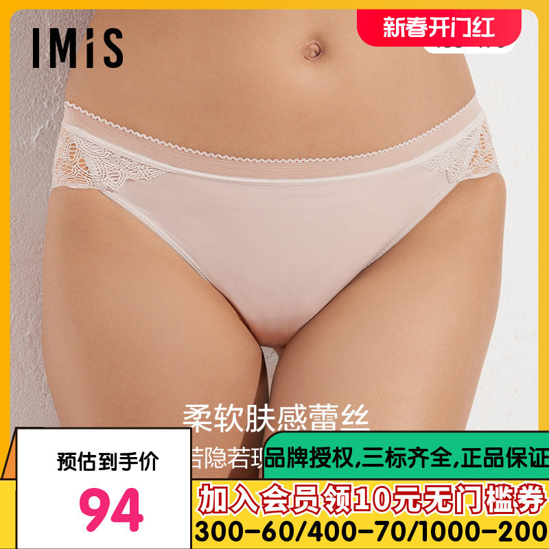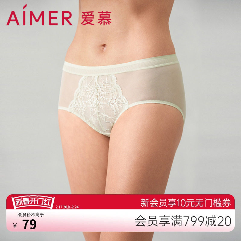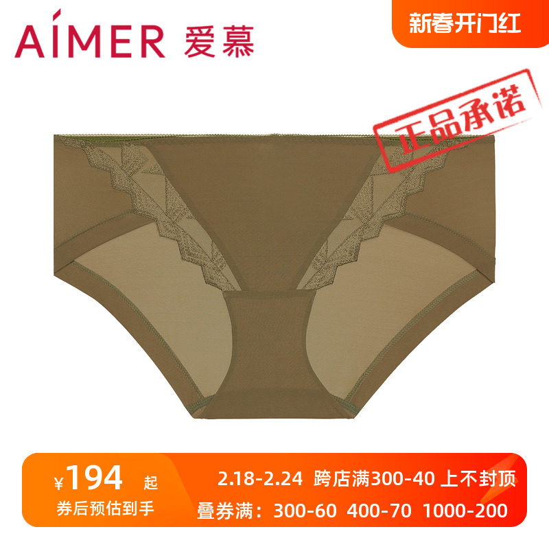 爱慕小苍兰内裤女棉质底裆蕾丝网纱中腰平角内裤AM239401