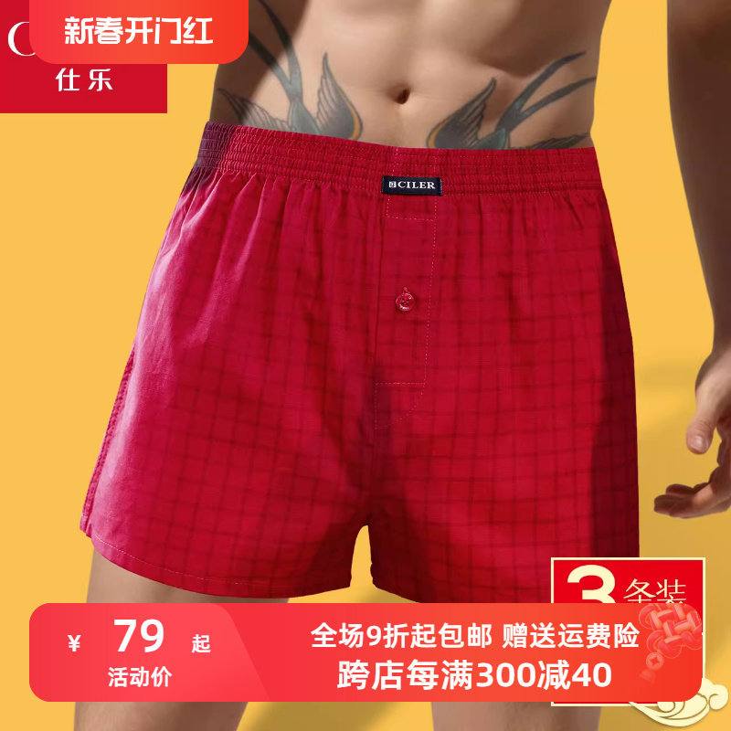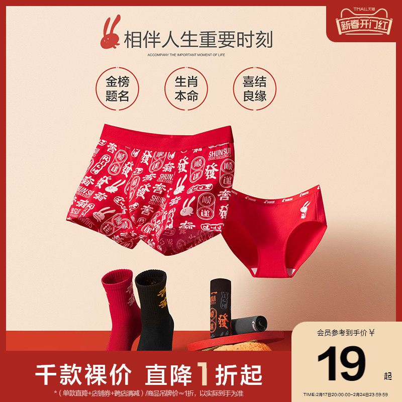 森马内裤男士抗菌裆短裤男生平角裤新年喜庆男女情侣款透气四角裤