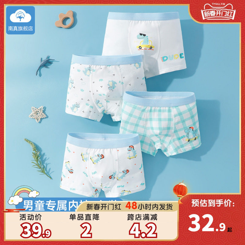 儿童内裤男童A类纯棉平角短裤100%宝宝中大童小男孩四角裤头全棉