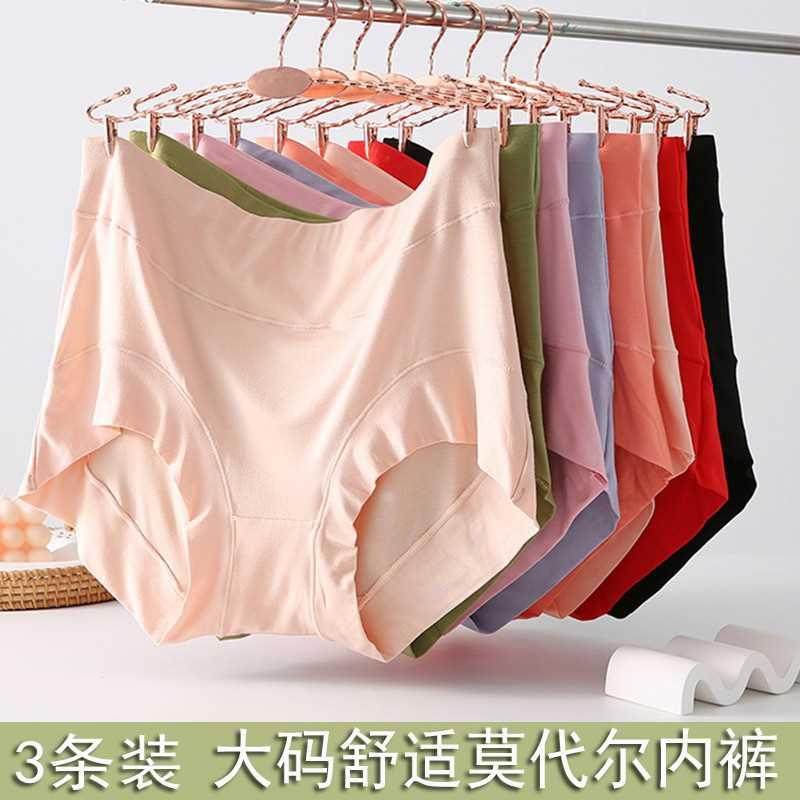 加肥大码莫代尔内裤平角女200斤胖mm高腰妈妈款中老年本命年红色