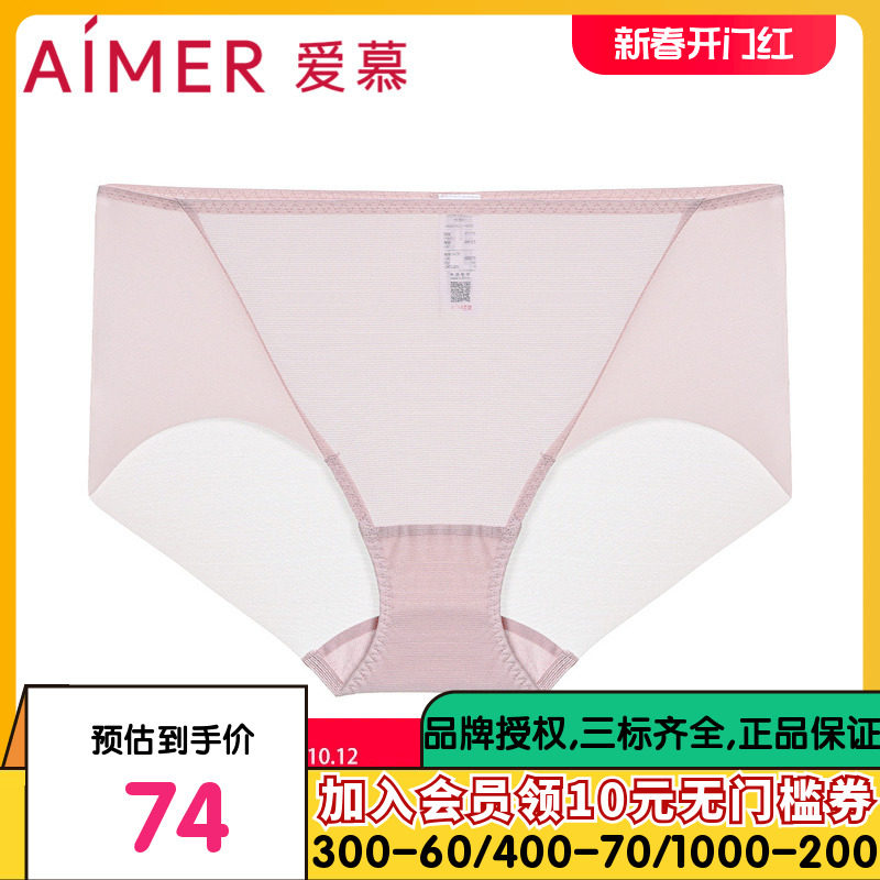 爱慕舒适包容柔顺纯棉底档女士内裤净痕腿围中腰平角裤女AM238791