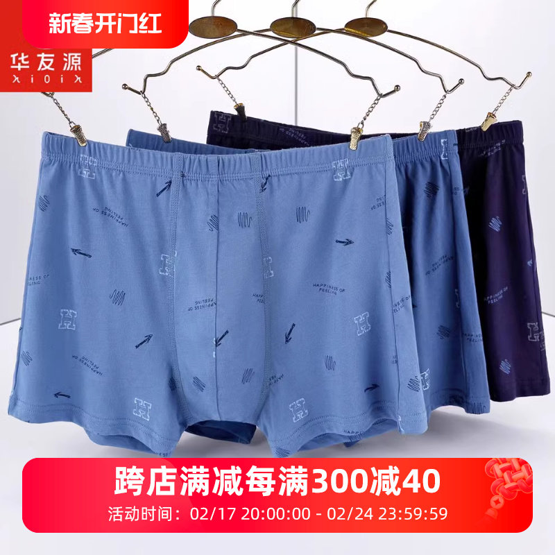 华友源中老年内裤男士平角裤老人纯棉爸爸宽松印花加大码四角裤