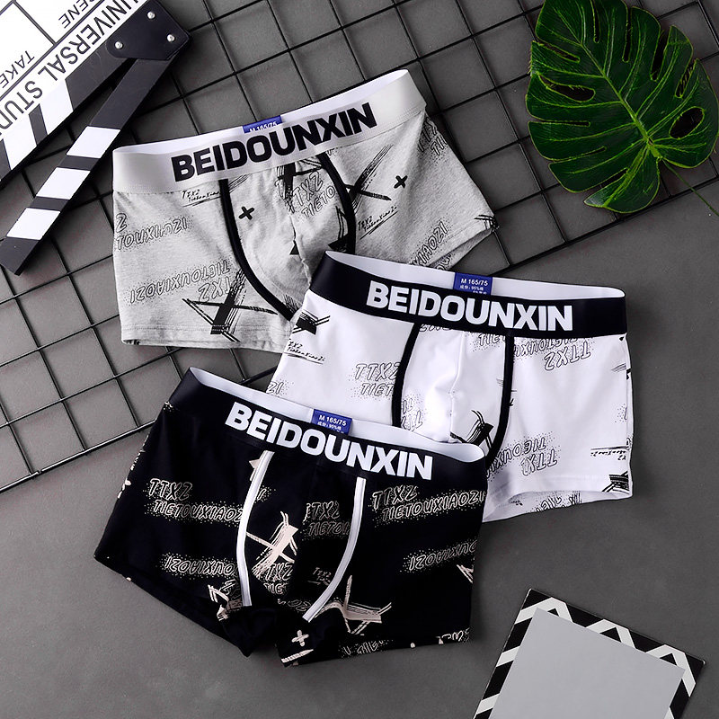 3条装男士内裤纯棉宽松大码印花平角裤衩潮流运动男生四角大裤头