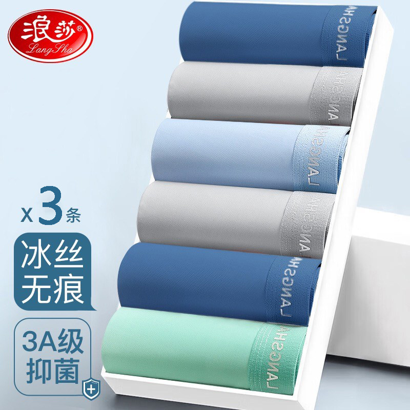 浪莎男士内裤冰丝无痕夏季薄款平角短裤头男生青少年四角透气底裤