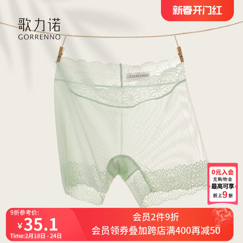 歌力诺蕾丝平角内裤女夏性感透明薄纱高腰提臀网纱四角打底安全裤