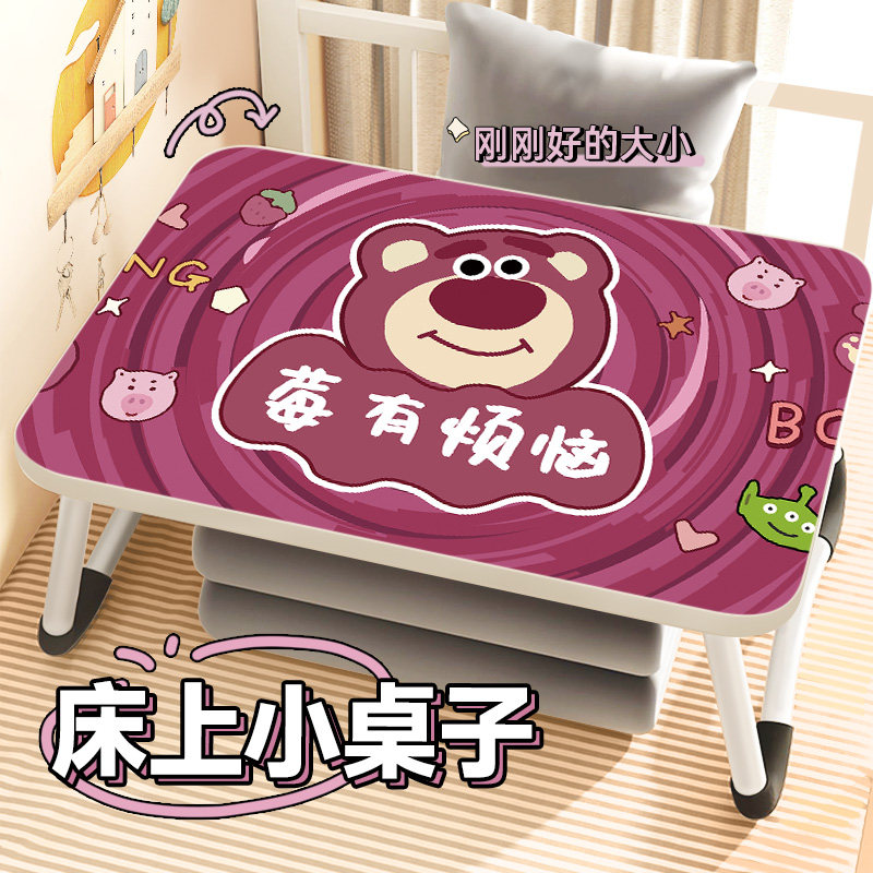 草莓熊小桌子床上桌卡通儿童学习写字书桌家用学习桌学生宿舍懒人神器笔记本电脑桌卧室飘窗可折叠落地小桌板