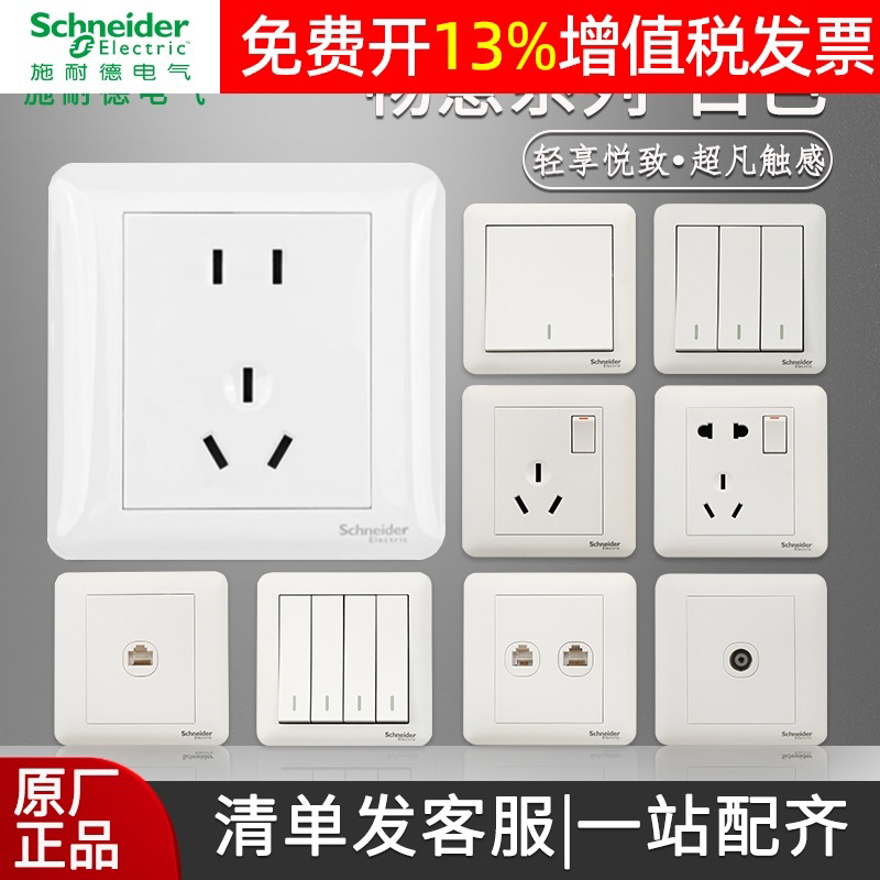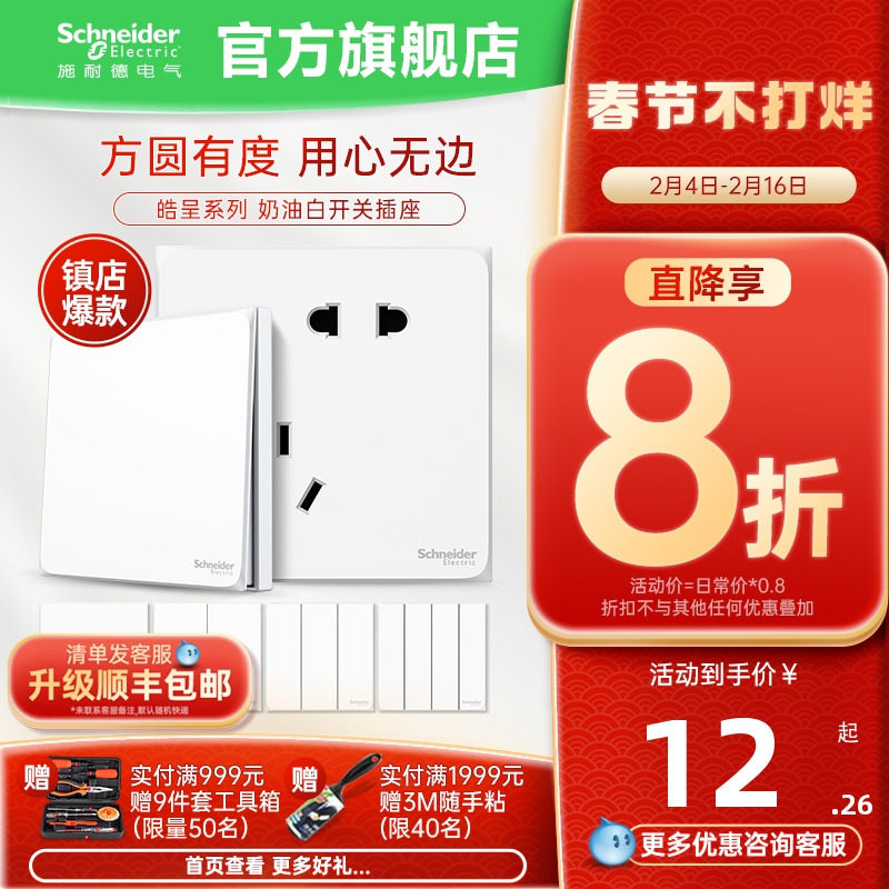 施耐德智能官方旗舰店官网皓呈白86型开关插座面板多孔错位斜五孔