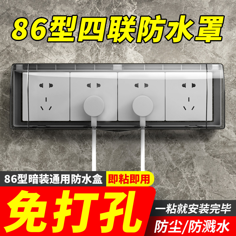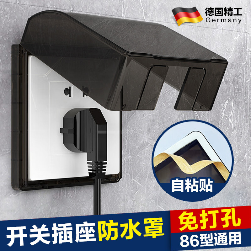 86型粘贴式防水插座盒卫生间浴室开关防水罩保护盖插头挡水保护盒