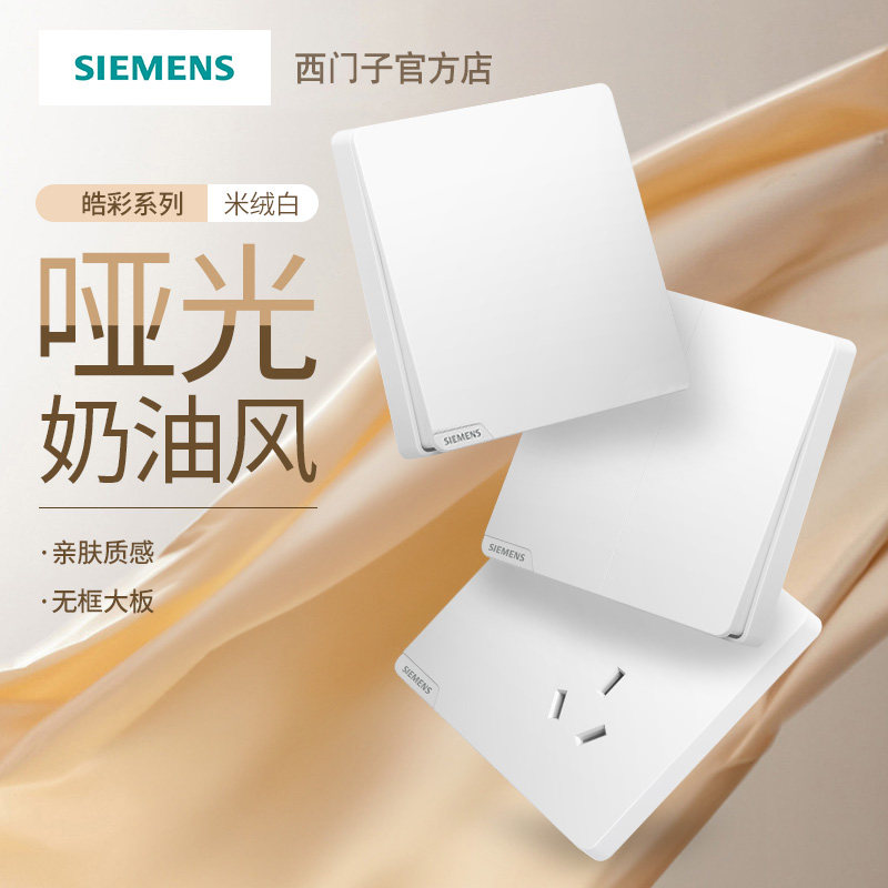 西门子插座开关按钮面板致典白86型五孔家用一二三开单控双联三控