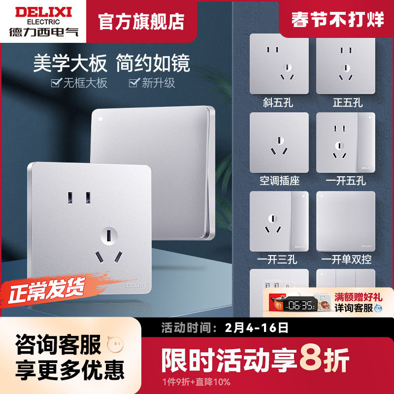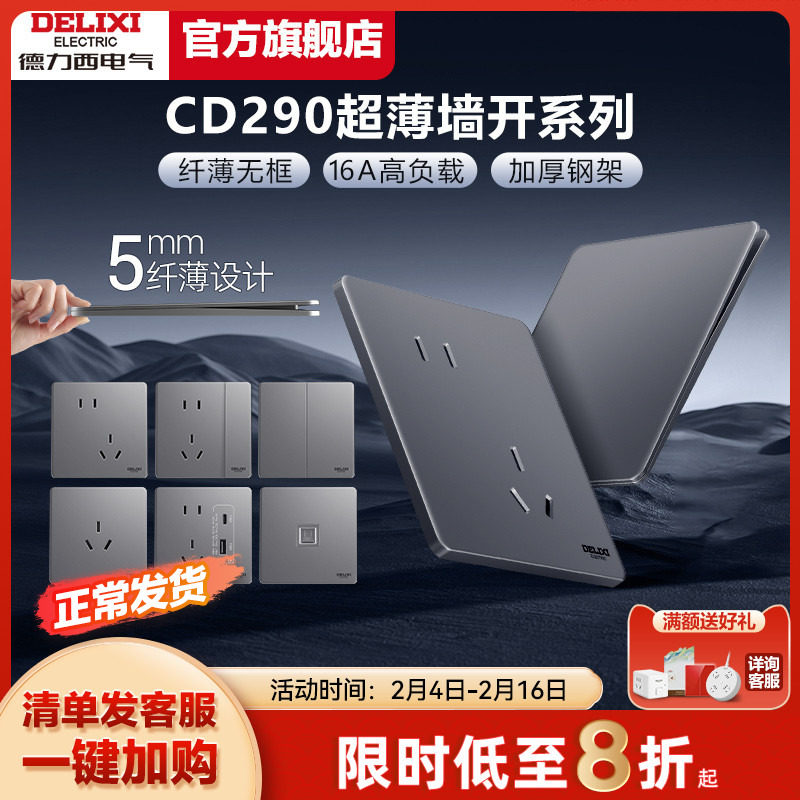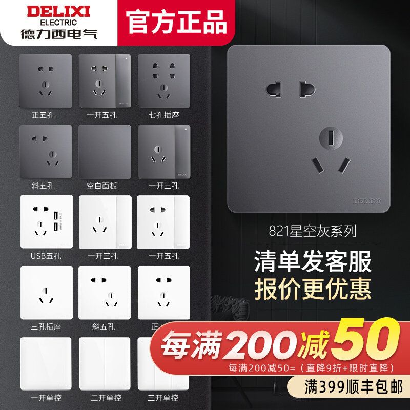 德力西旗舰店超薄开关插座面板16A空调墙壁一开五孔86型290星空灰
