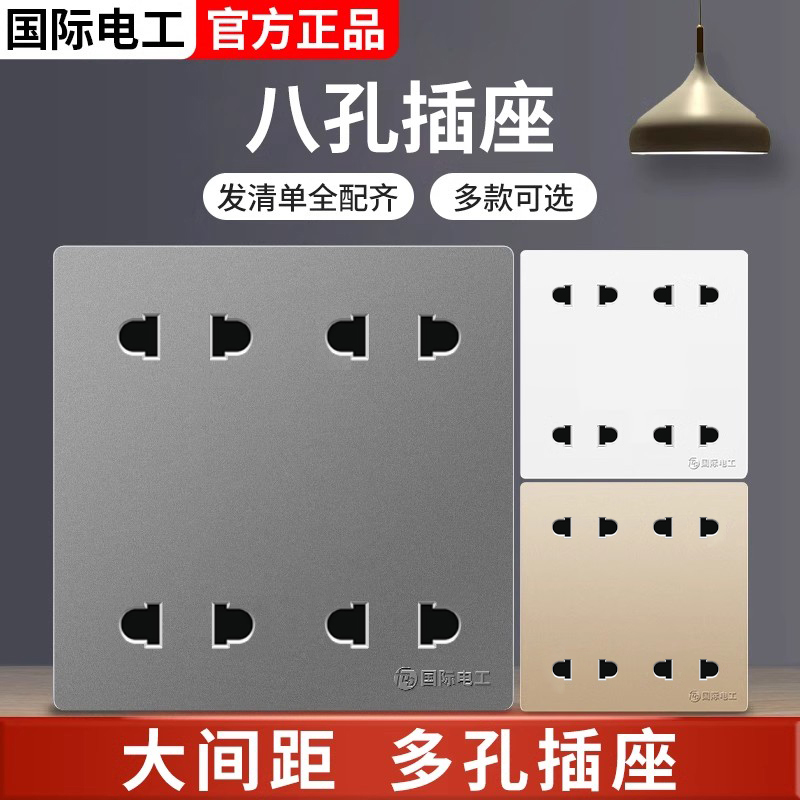 国际电工八孔电源插座家用暗装86型双二四孔8孔墙壁开关插座面板