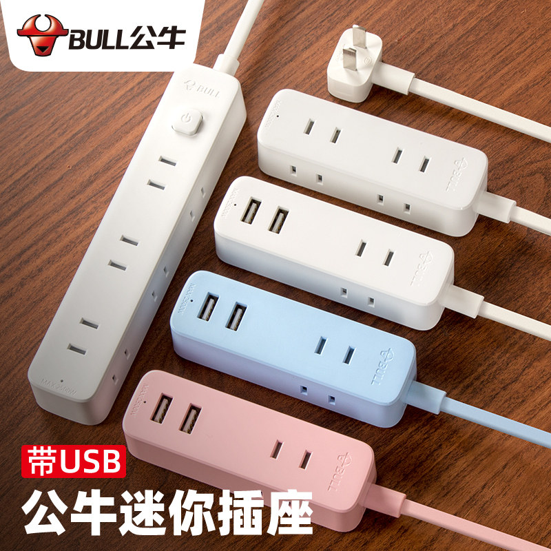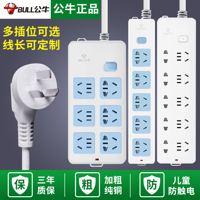 公牛多功能插座长线学生宿舍3米5米接线板带线开关多孔拖线板插排