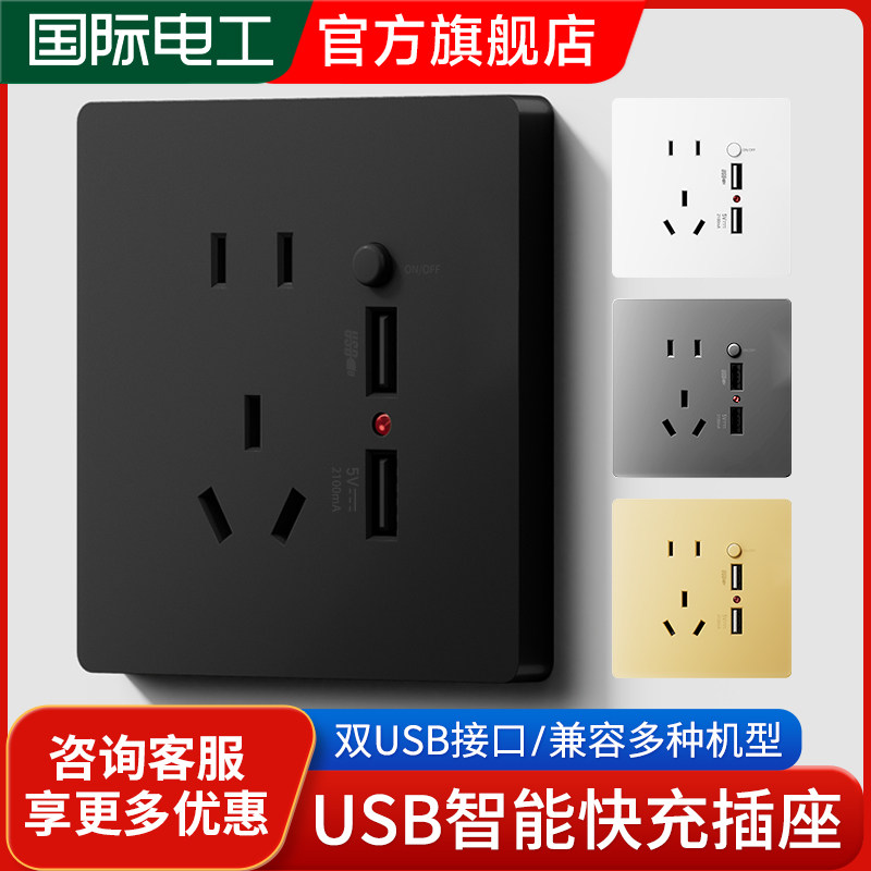 国际电工86型电源墙壁开关插座粘贴手机支架五孔USB多孔插座面板