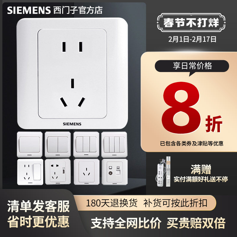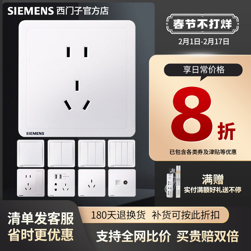 西门子开关插座家用面板多孔远景雅白16a空调usb一开单双控五孔86