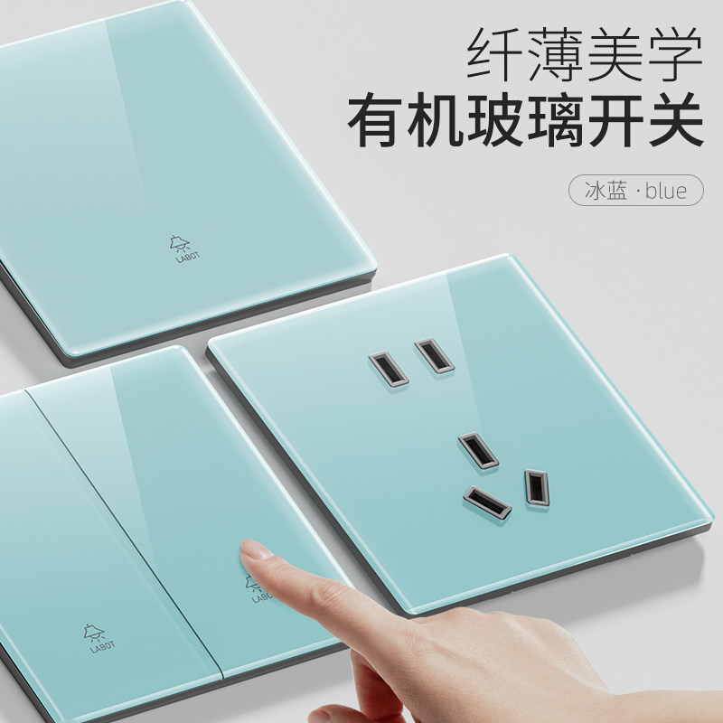 超薄钢化玻璃镜面开关插座面板86型墙壁暗装家用一开五孔全屋套餐