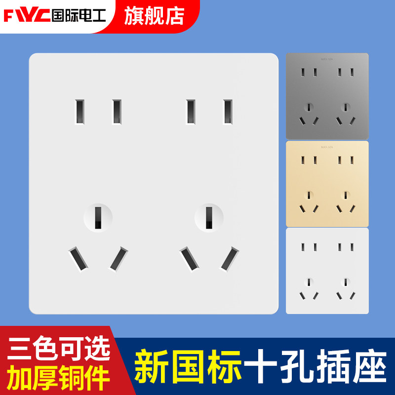 国际电工官方86型暗装墙壁一开五孔插座面板多孔大板家用开关插座