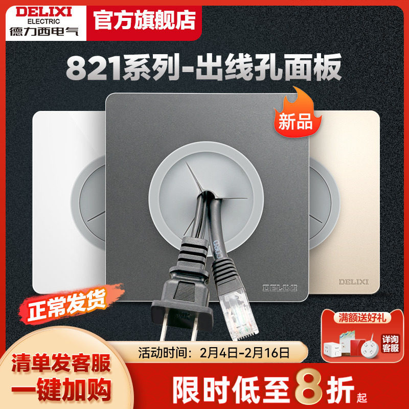 德力西出线孔面板86型遮挡面板带出线孔穿线开关装饰插座盖板家用