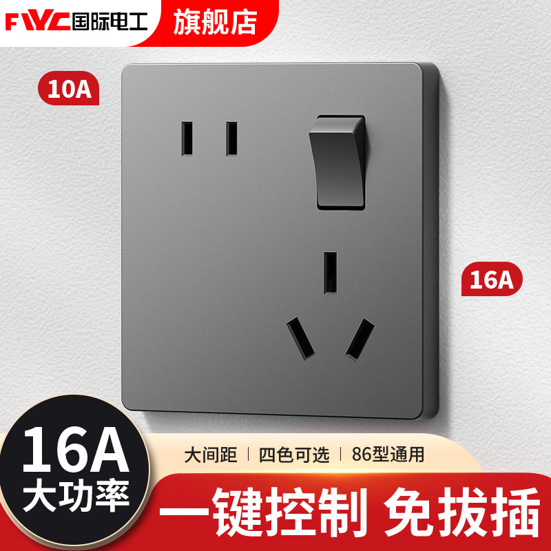 国际电工86型开关插座家用暗装五孔带一开单双控墙壁电源面板灰色