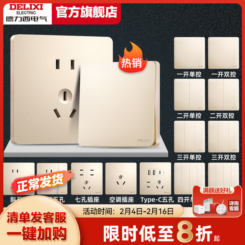 德力西奶油风开关插座86型暗装墙壁面板一开五孔16A家用电源821金