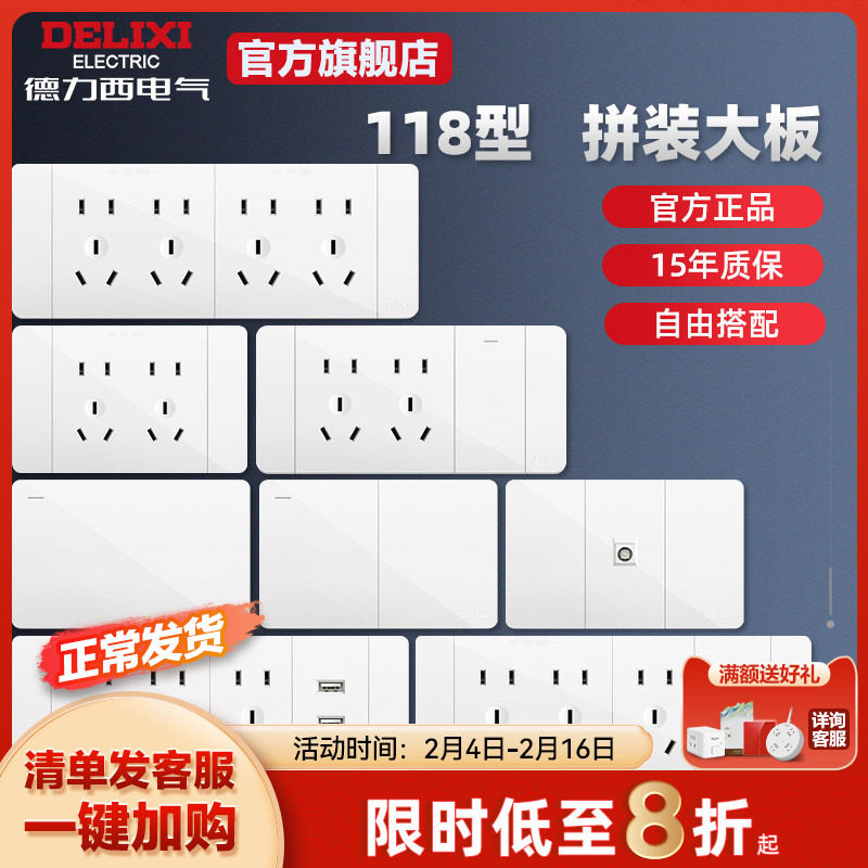 德力西118型开关插座面板多孔墙壁暗装9孔九孔12孔十五孔厨房插座