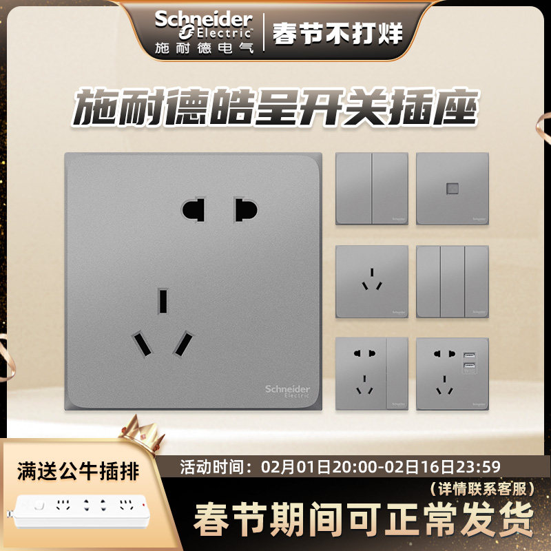 施耐德开关插座面板五孔10A家用多孔皓呈系列灰色官方旗舰店