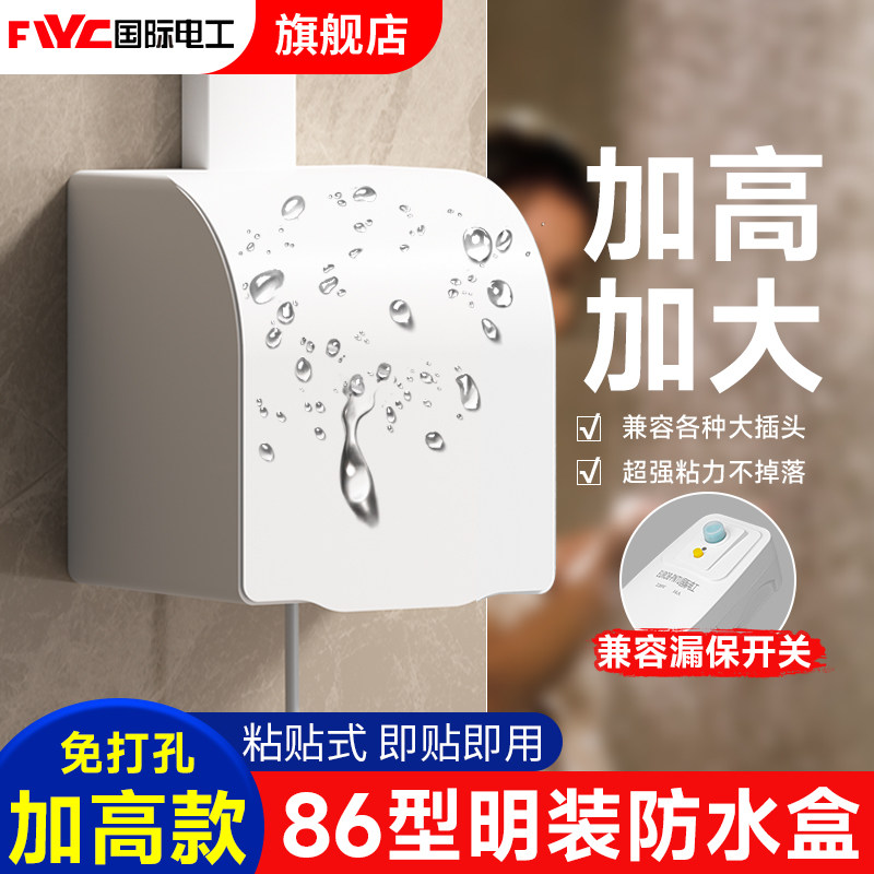 86型加高加长插座防水罩卫生间浴室漏电开关防溅盒热水器保护盖套