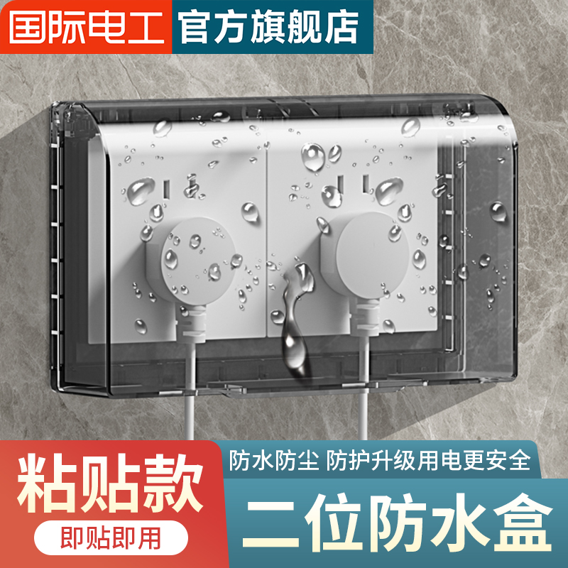 双86型开关防水罩浴室卫生间粘贴式防溅盒插座二位防水盒保护罩