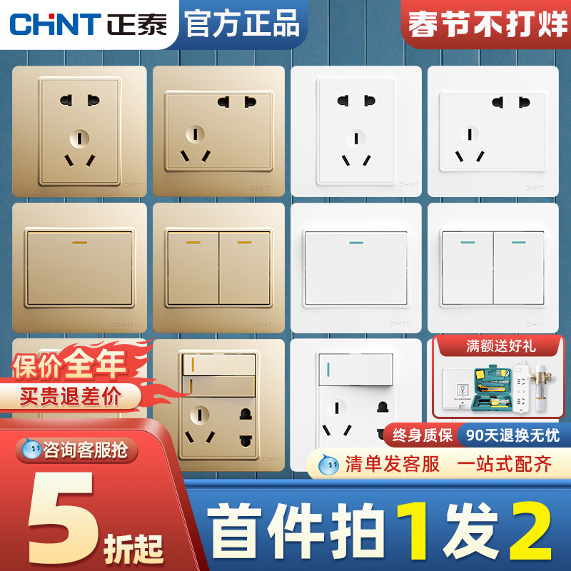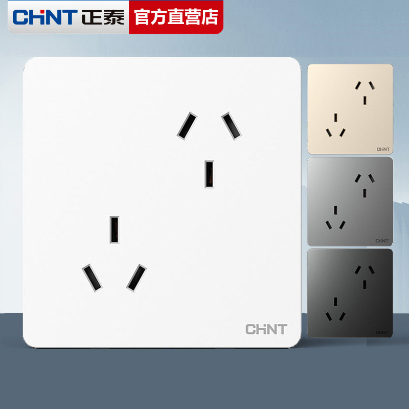 正泰开关插座面板家用86型墙壁暗装斜五孔一开单双控5多孔三孔16A