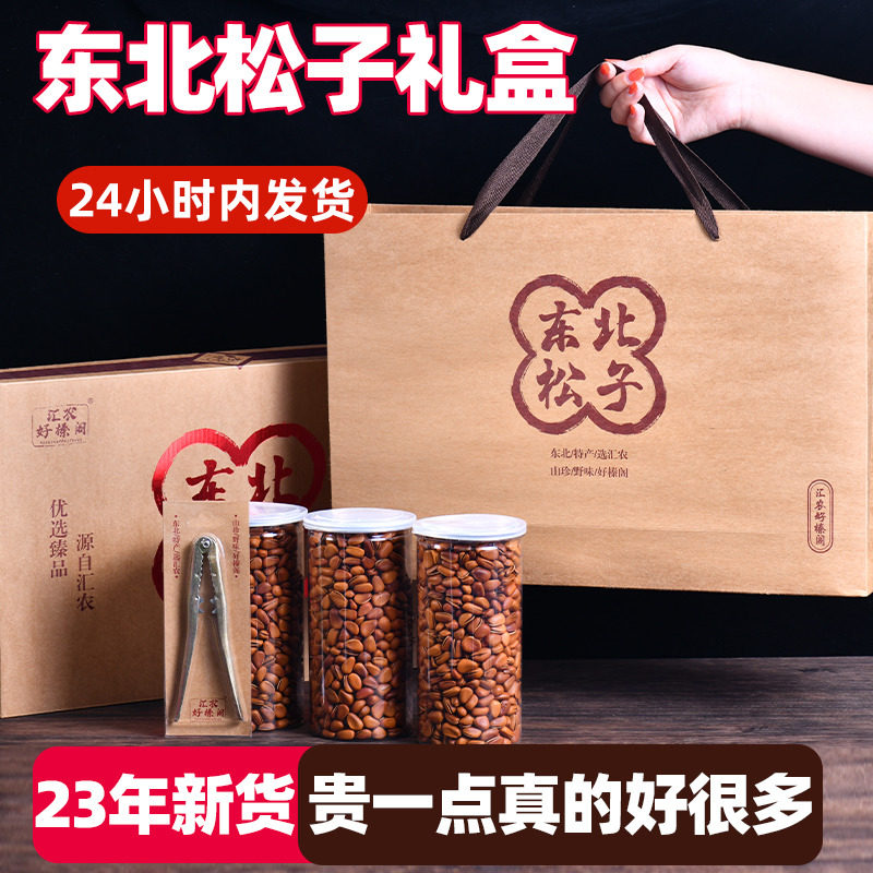 东北特产大松子礼盒优质2023年新货鲜手剥开口坚果笨炒熟干果年货