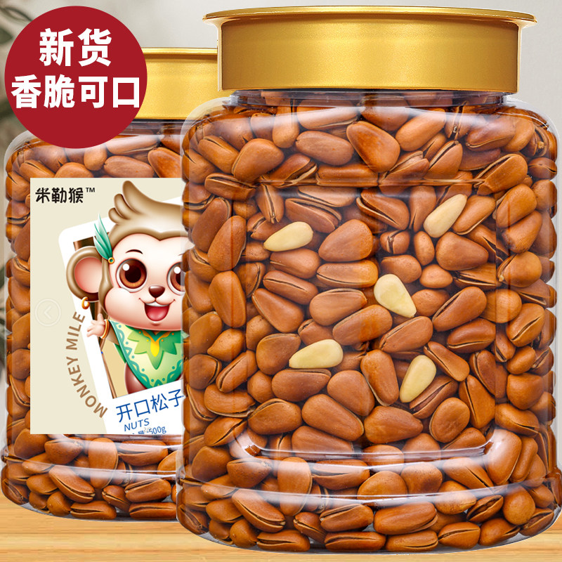 新货原味东北松子500g罐装大颗粒手剥开口干果坚果零食散装称斤
