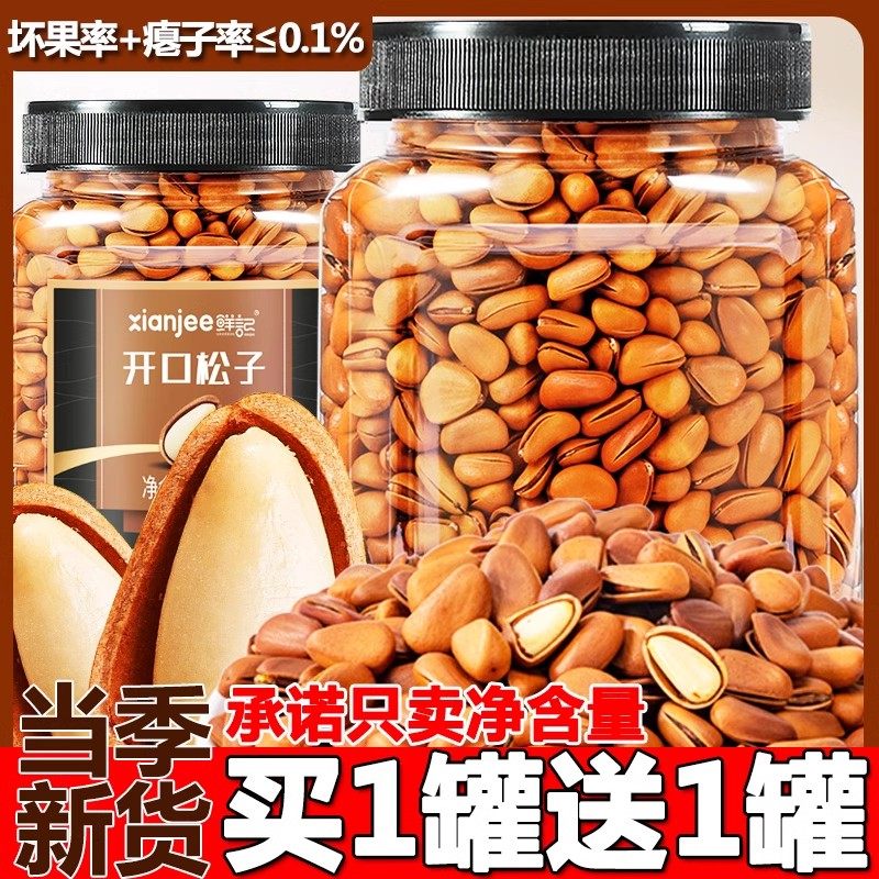 特大颗粒新货开口东北松子500g罐装手剥原味坚果干果野生红松子仁