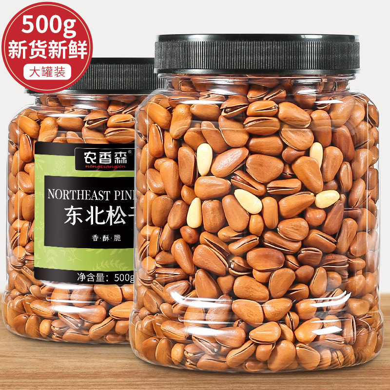 当季新货特大东北松子原味净重500克开口松籽小包装罐装零食坚果