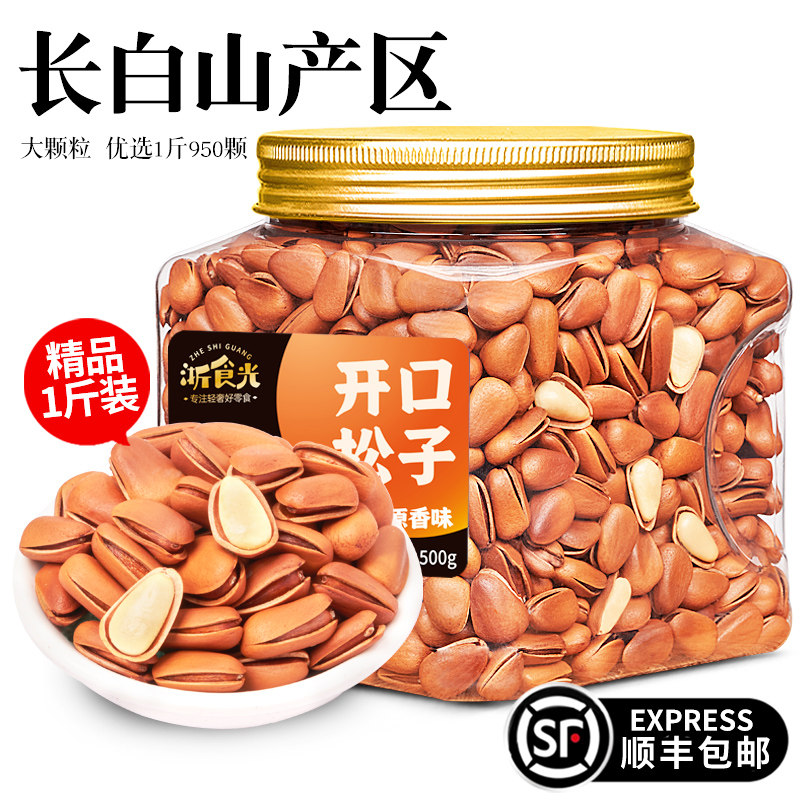 浙食光开口东北松子500g大颗粒新货手剥年货坚果孕妇休闲零食干果