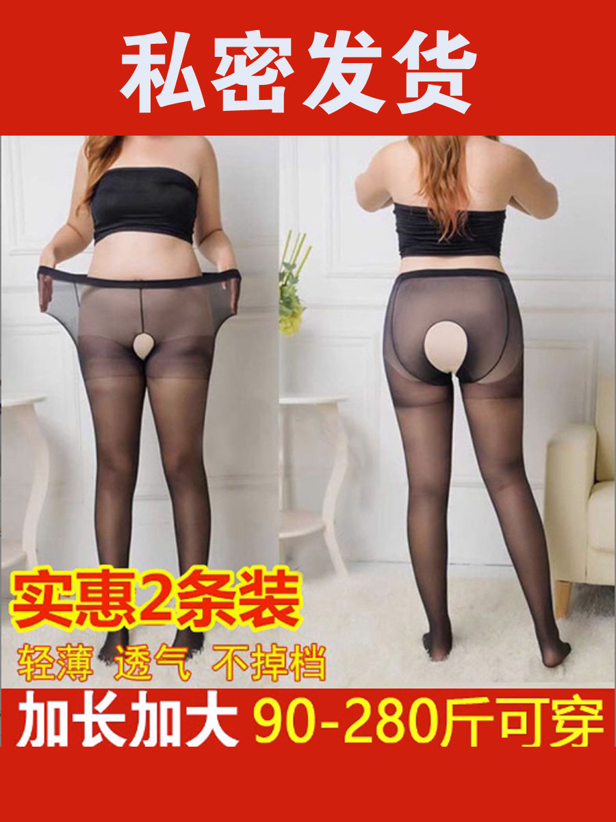 特大码丝袜200斤胖mm防勾丝连袜裤超薄夏季加大开档丝袜裤