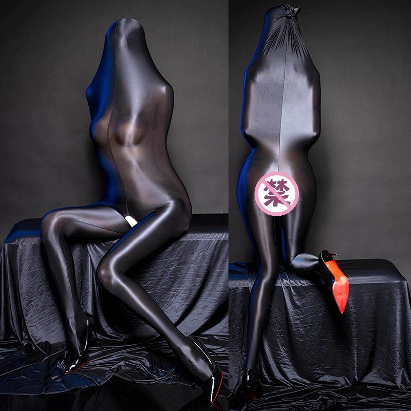 zentai开档内衣全身油光油亮丝滑性感透明全包包头紧身拉链连体衣