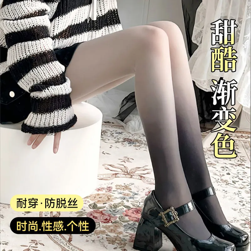 渐变丝袜开档黑丝纯欲防勾丝春夏新款任意剪薄款渐变色丝袜连裤袜