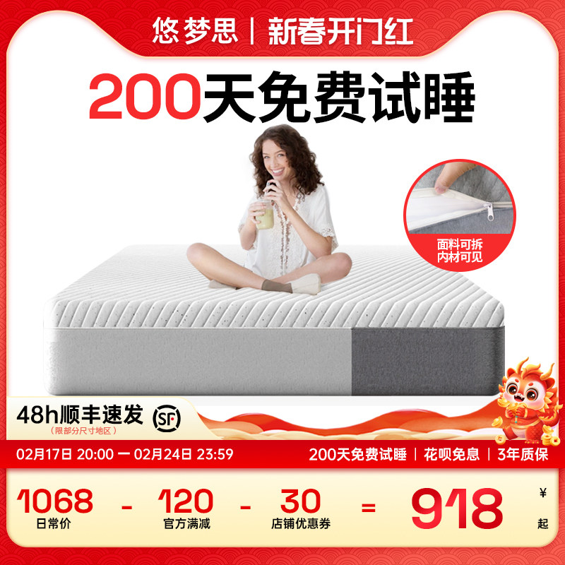 梦百合零压记忆棉弹簧0压护脊床垫席梦思厚垫传奇7号尊享版