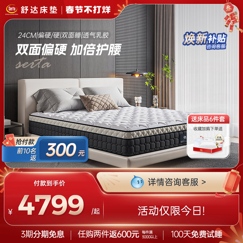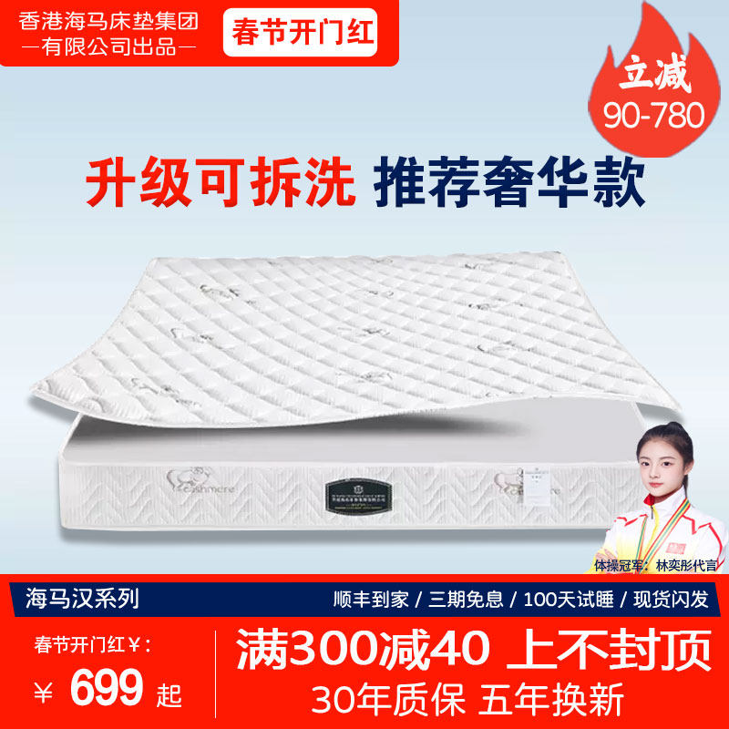 席梦思十大名牌软硬两用经济型海马家用酒店乳胶椰棕袋装弹簧床垫