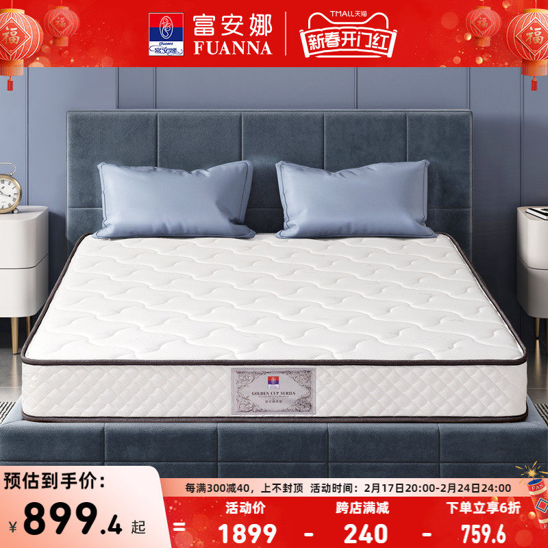 富安娜床垫椰棕偏硬护脊双人1.8m舒适海绵席梦思弹簧床垫租房棕垫