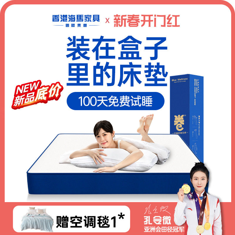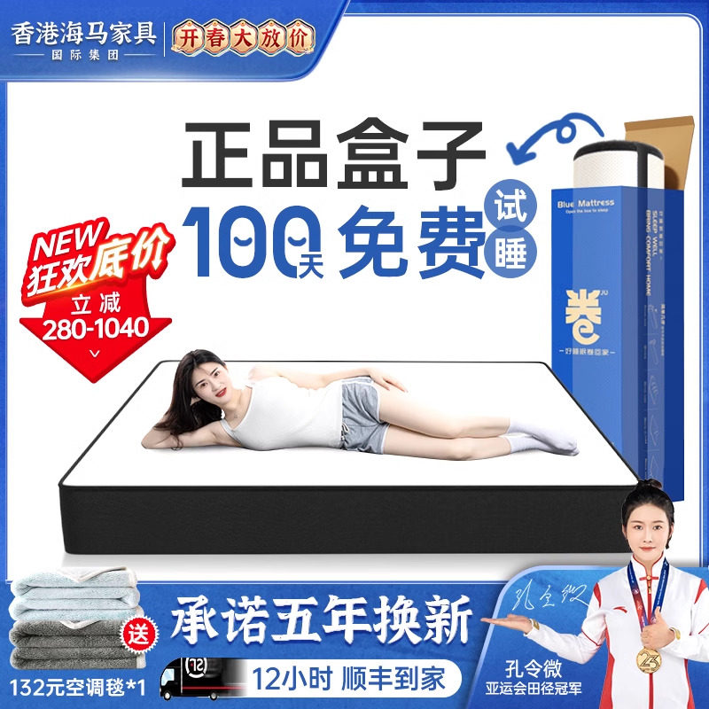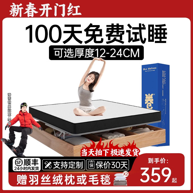 蓝色卷包记忆棉席梦思压缩家用乳胶独立弹簧五星酒店名牌盒子床垫