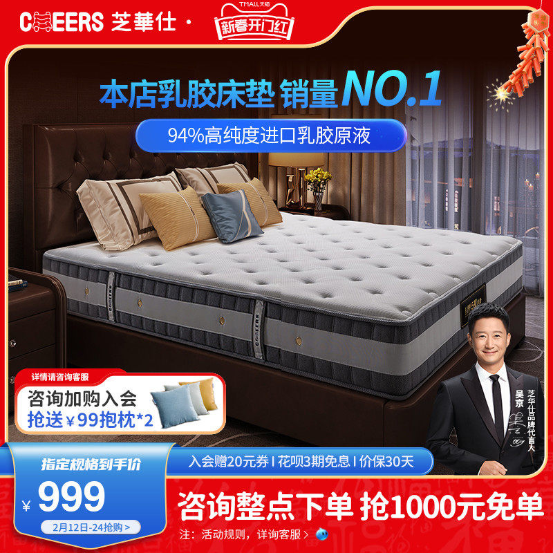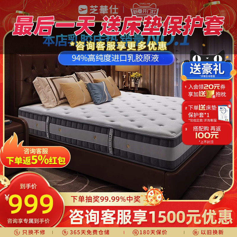 芝华仕弹簧乳胶床垫席梦思酒店代椰棕垫厚垫子软硬家用1.8米d026