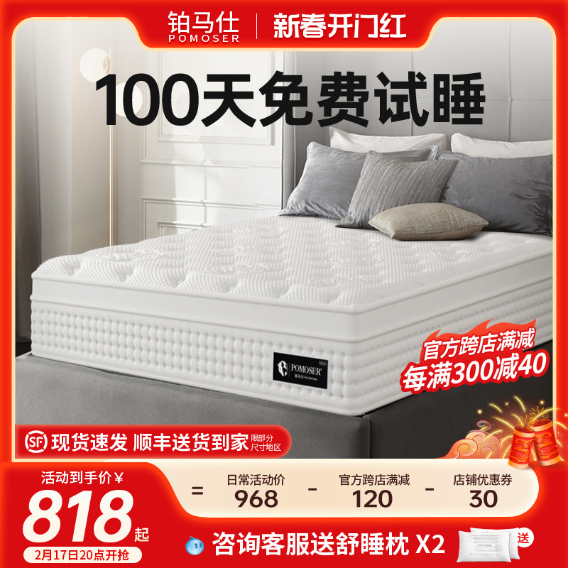 铂马仕天然乳胶床垫独立弹簧软垫压缩厚款席梦思椰棕硬垫家用双人