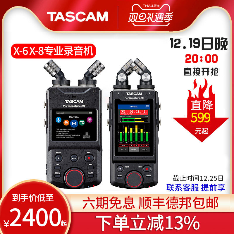 TASCAM达斯冠 X6 X8专业录音机便携手持蓝牙录音笔调音台单反同步
